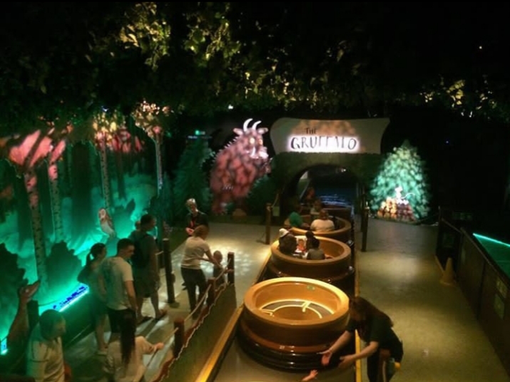 Construction began on the new ride almost immediately, with much of it occurring during the winter months when the parks were closed. Merlin Magic Making, who designed many of the family attractions we see at Merlin parks today, were responsible for the design of many of the scenes on this new Gruffalo attraction, mostly incorporating screens and projections into the ride, as well as smell pods to create the illusion that you really are exploring the deep, dark, woods!