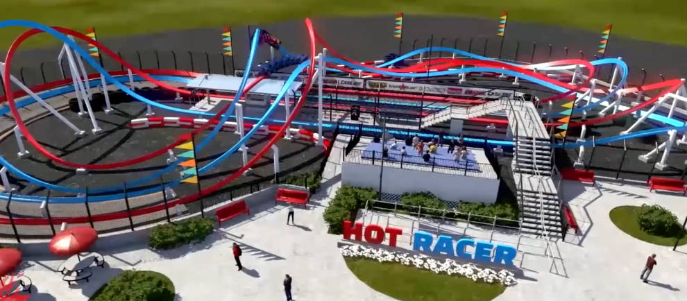 The Intamin Hot Racer will be available in three variations, one being Infinity, a compact thrillride offering two twin tracks that duel and race beside each other. The concept video shows the two tracks as red and blue, but it’s likely the coaster’s colour scheme will vary based on the park and theme.